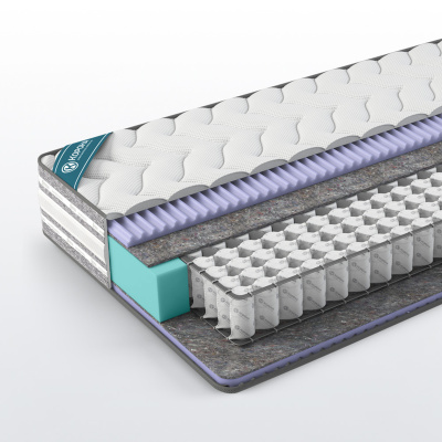 Модель на независимом блоке TFK 500 высотой 12 см повышенной упругости с металлической рамкой усиления по периметру блока. Данная рамка лучше держит форму матраса, борт изделия меньше подвержен деформации в процессе эксплуатации. Рамка усиления равномерно распределяет нагрузку на короб матраса и повышает срок службы изделия при повышенных нагрузках. В составе матраса ортопедическая массажная пена «Ormaform» - обладает хорошей несущей способностью и долговечностью, а особая форма обеспечивает дополнительный комфорт и способствует расслаблению мышц.